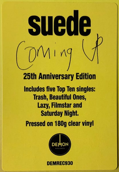 Hype sticker on shrink wrap “25th Anniversary Edition includes the five Top Ten singles Trash, Beautiful Ones, Lazy, Filmstar & Saturday Night. Pressed on 180g clear vinyl.”